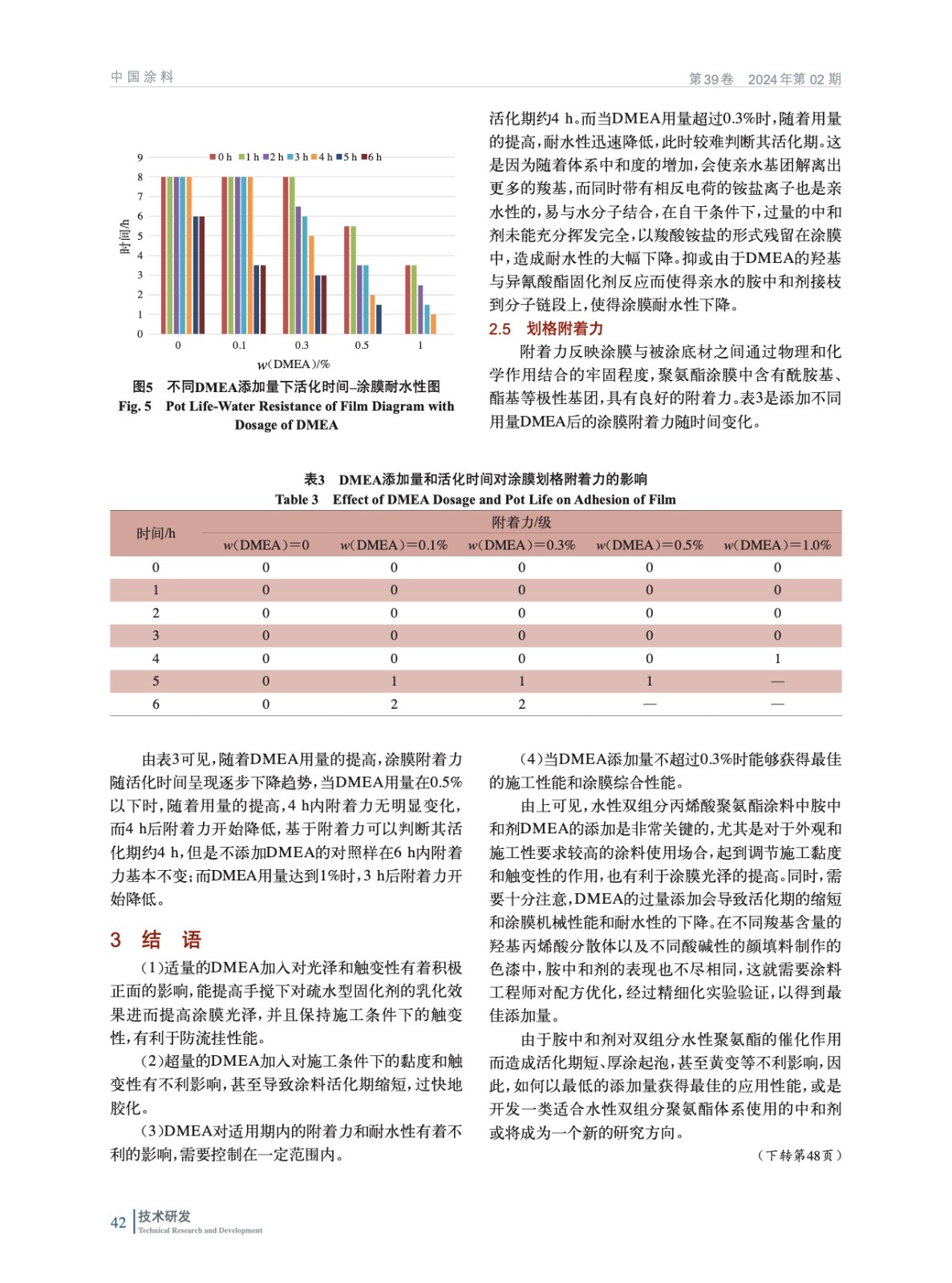 研究了搭載不同用量胺中和劑的水性羥基丙烯酸涂料,混合異氰酸酯固化劑后,涂料黏度、觸變指數、pH值、光澤、耐水性和附著力隨時間變化的關系,為胺中和劑在水性丙烯酸聚氨酯涂料中的合理用量提供一定的參考價值。
