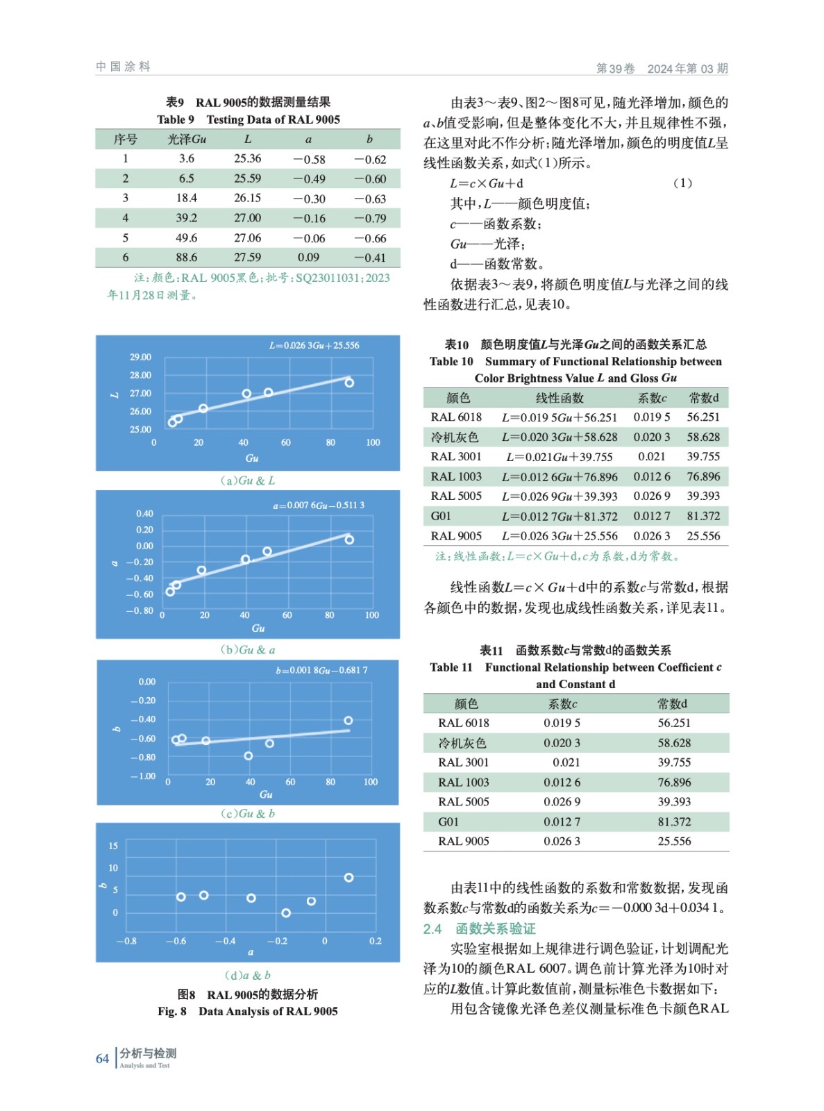 當用包含鏡像光澤(SCI)色差儀測色時,光澤會對涂膜顏色明度(L值)有影響。通過實驗總結出顏色明度L值與光澤的函數關系,通過此函數關系可修正光澤對SCI色差儀配色及測色的影響。