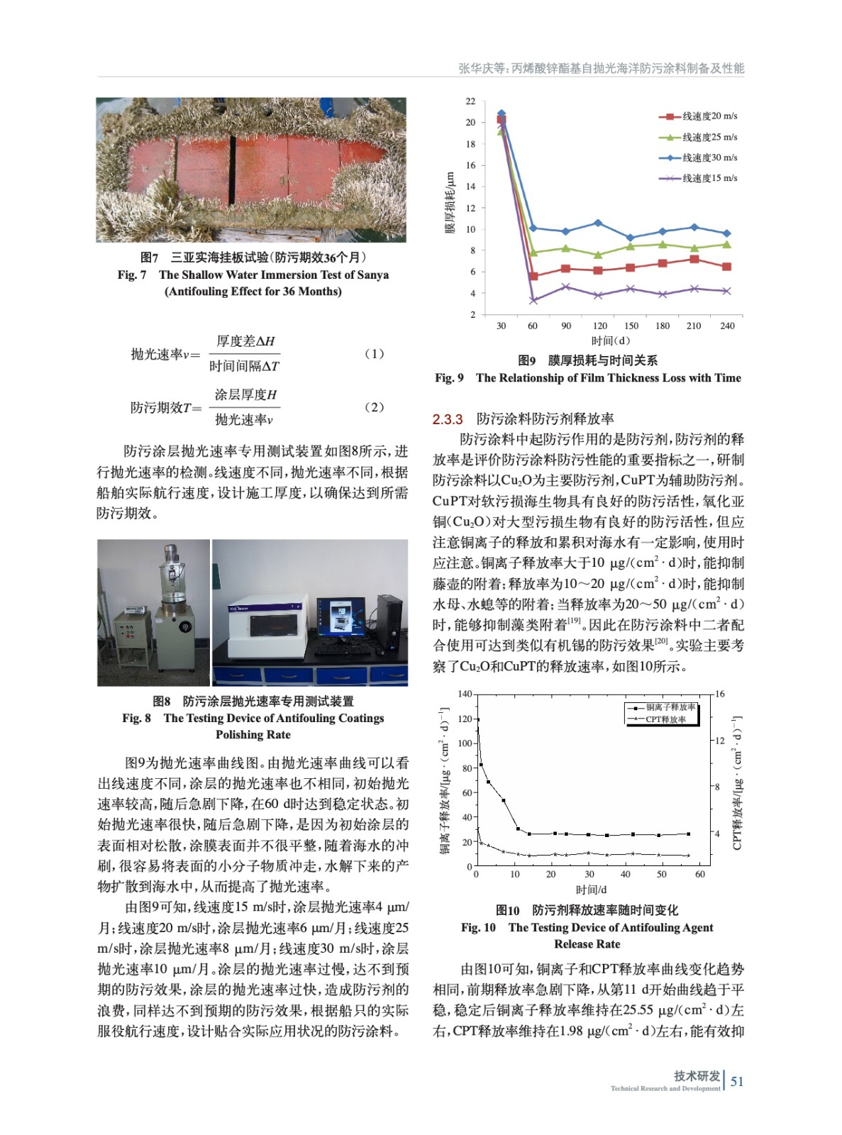 摘要:合成了水解型乙烯基不飽和丙烯酸鋅小分子單體,利用此單體自由基聚合制備金屬丙烯酸鋅基自拋光型樹脂。采用該丙烯酸鋅樹脂制備自拋光防污涂料,氧化亞銅為主要防污劑,以符合環保要求的有機防污劑奧麥丁銅(CuPT)相復配。實驗結果表明,丙烯酸鋅小分子水解單體的質量分數為50%~55%時,涂層水解速率達到最佳狀態。防污涂膜拋光速率1個月6~8 μm、銅離子(Cu2+)釋放速率25 μg/(cm2·d),奧麥丁銅釋放速率10 μg/(cm2·d),實海掛板驗證36個月具有良好的防污效果。