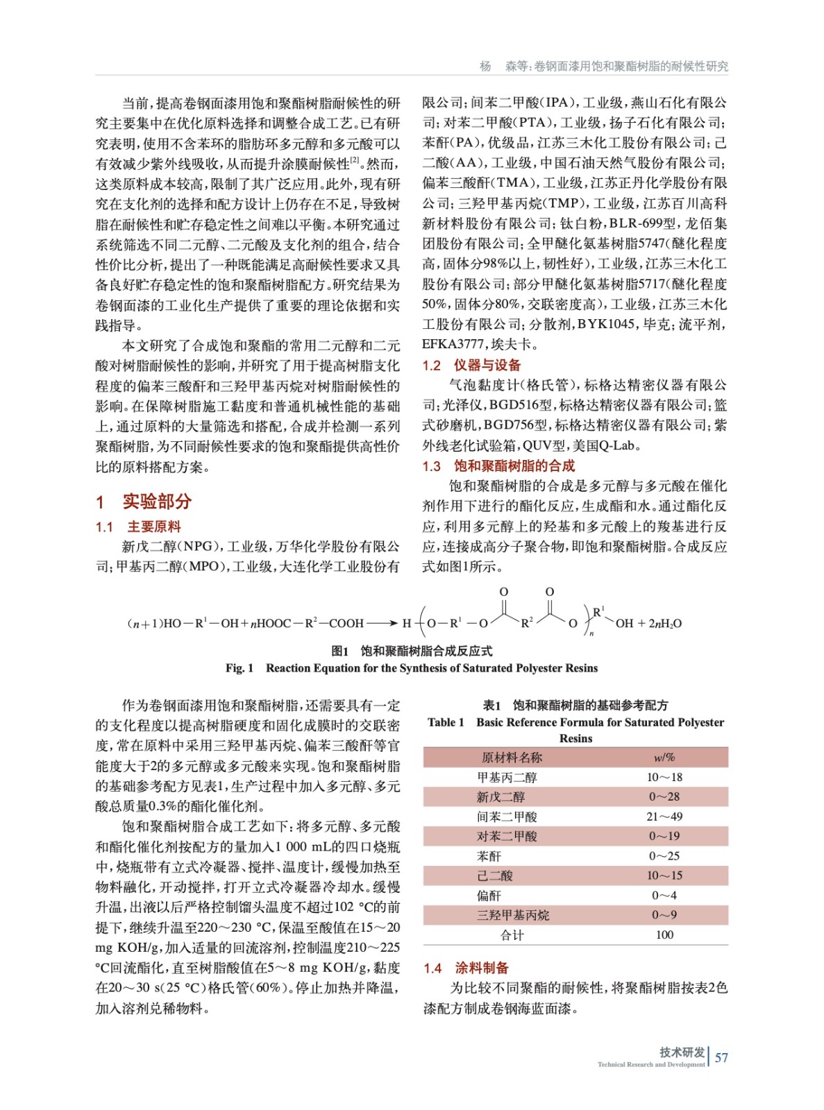 合成了一系列飽和聚酯樹脂并檢測耐候性,分析了各種原料對樹脂耐候性的影響。結果表明,新戊二醇、間苯二甲酸、三羥甲基丙烷是合成耐候型聚酯樹脂的合適原料。研究結果對卷鋼面漆用飽和聚酯的配方設計具有指導意義。
