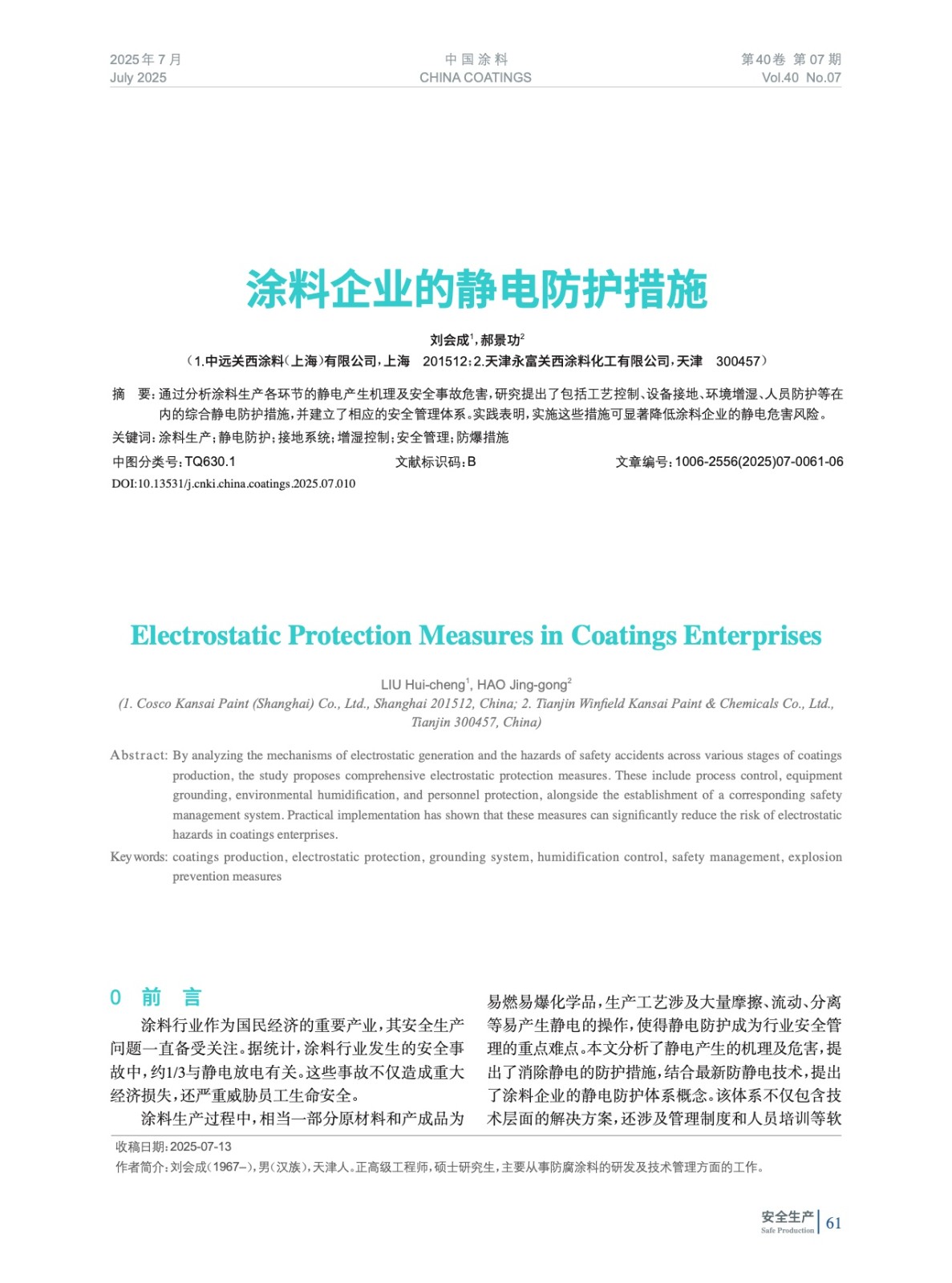 本文系作者@劉會成,郝景功 授權中國涂料網(wǎng)發(fā)表,并經(jīng)中國涂料網(wǎng)編輯,未經(jīng)允許不得轉載,如需轉載請聯(lián)系chinacoatingnet@vip.163.com