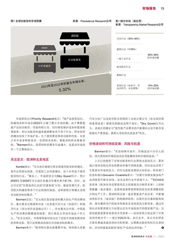 各工業(yè)部門對(duì)功能涂料需求量越來(lái)越大