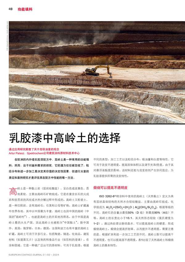 乳膠漆中高嶺土的選擇