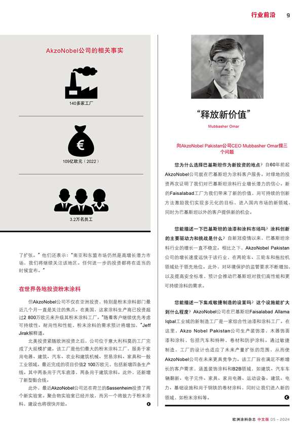 AkzoNobel公司在亞洲、歐洲和北美的投資
